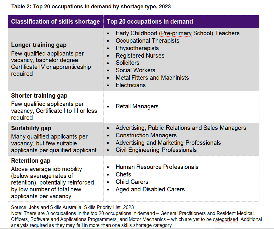 注: 在需求量最大的20个职业中有3个职业--全科医生和住院医师、软件和应用程序员以及汽 车机械师尚待分类。以上三个职业可能属于多个技能短缺类别,因此需要进行更多分析。