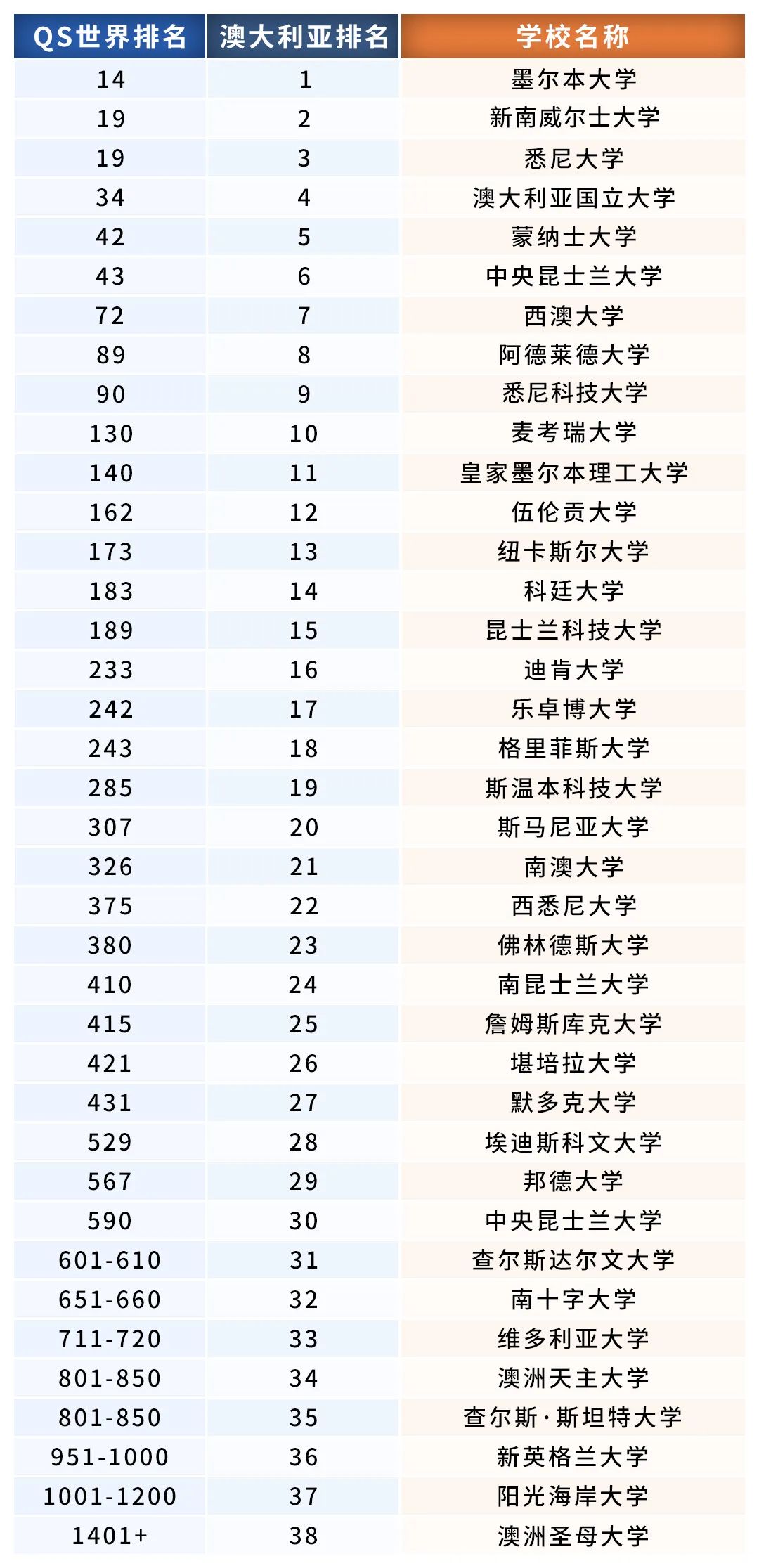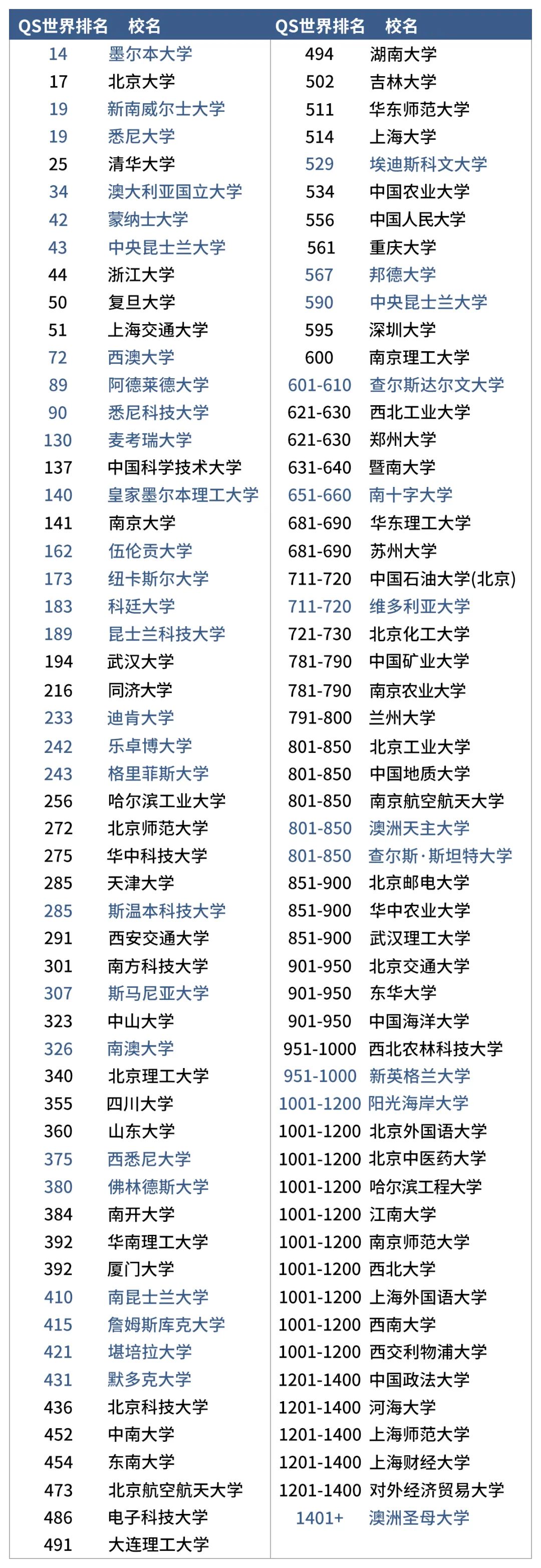 ![]() 一、澳大利亚大学2024QS世界排名 ![]() 根据2024年QS世界大学排名榜显示,8所澳大利亚大学全部跻身世界大学排名100强,27所澳大利亚大学位列世界大学500强。在2024 QS 排名中,以下3所澳洲“八大”成员进入全球Top20:墨尔本大学(14名)较去年上升 19 名悉尼大学(19名)较去年上升 22 名新南威尔士大学(19名)较去年上升 26 名澳洲长期在QS世界大学排名中没有Top20大学的纪录终于被打破~除了澳国立(34名)名次略有下降外,其他澳洲“八大”名校的排名都有提升。今年还有一位新成员进入全球Top100:悉尼科技大学在今年排名中上升49位、位居全球90名。此外还有很多澳洲院校排名大幅上升:麦考瑞大学(130名)上升65名皇家墨尔本理工大学(140名)上升50名乐卓博大学(242名)上升74名……以上是2024QS澳洲大学排名完整榜单 二、2024QS世界排名指标 今年QS对排名方法进行了有史以来最大化改善,引入了3项全新指标:可持续发展、就业成果和国际研究网络。并且,对某些已有指标的权重进行了重新校准,包括学术声誉指标、雇主声誉指标和师生比指标。 ![]() 三、中澳大学QS世界排名对比 ![]() 想要了解更多留学详情可以关注公众号进行查阅或者点击↓↓↓下方阅读原文在线了解详情。 韩国|俄罗斯|日本|德国|意大利|泰国|法国英国|美国|加拿大|澳大利亚|新西兰新加坡|马来西亚|白俄罗斯|中国香港|中国澳门热门文章 往期精彩,一次掌握✦ 2023年高考后去澳大利亚留学读本科有哪些途径✦ 专科生澳大利亚留学方案、申请时间规划、申请条件一文揭晓✦ 澳大利亚国立大学——南半球第一的高等学府✦ 2023年澳大利亚硕士留学申请时间规划✦ 2024年QS世界大学排名出炉关键词回复 获取留学国家资讯 回复【韩国留学】,获取更多韩国留学资讯 回复【日本留学】,获取更多日本留学资讯 回复【俄罗斯留学】,获取更多俄罗斯留学资讯 回复【马来西亚留学】,获取更多马来西亚留学资讯 回复【英国留学】,获取更多英国留学资讯 回复【澳大利亚留学】,获取更多澳大利亚留学资讯 更多请回复【国家留学,例如新西兰留学】,获取更多 关注公众号 了解更多关于择校资讯 回复【2+2留学】,获取2+2留学院校汇总 回复【3+2留学】,获取3+2留学院校汇总 回复【1+3留学】,获取1+3留学院校汇总 回复【留学预科】,获取留学预科院校汇总 END 留学之旅,扬帆起航 想了解留学申请、院校等相关疑问 点击下方阅读原文免费获取留学规划 ![]() 联系方式:张老师15954100210(同微信) ![]() 联系方式:李老师15853132580(同微信) ![]() 戳“阅读原文”,开启留学一对一咨询之旅! 声明: 1、本公众号所发布的内容,没有注明“原创”字样的,文字和图片内容均来源于网络,版权归原作者所有,如有侵权,请联系删除! 2、对上述内容仅为转载,文中内容的准确性、可靠性或完整性仅供参考。 |