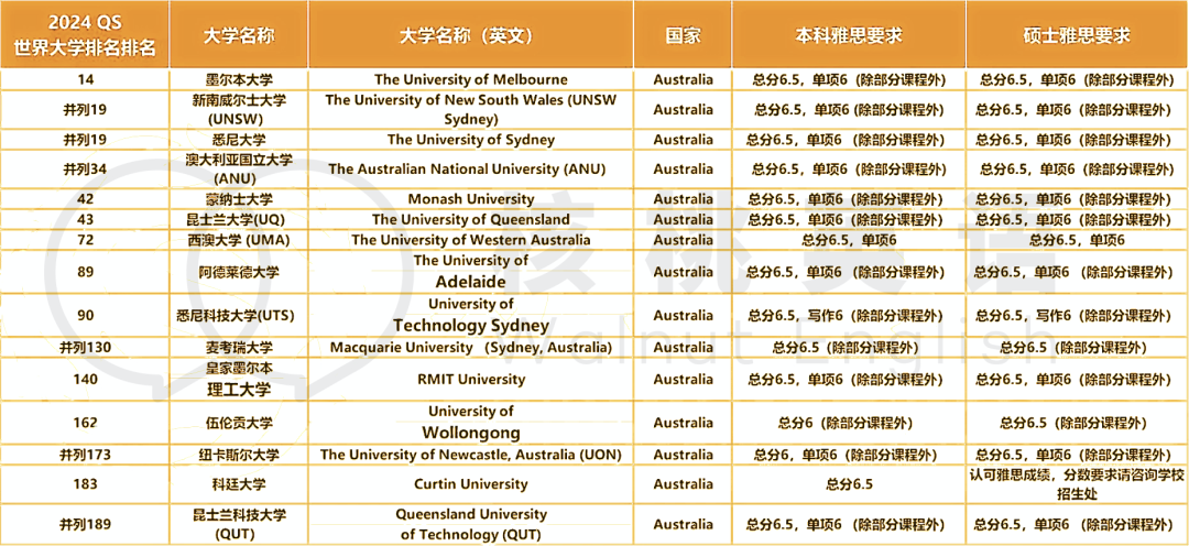 |  留学生又传来噩耗。。。这次是澳圈🙉 澳大利亚政府官网前几日发布了新版移民战略,被称为近几年最大的移民类改革,共有11大新规! 包括留学、工作、移民签证政策大紧缩、语言要求提升、转学受限等……  图源:澳大利亚2023年新发布移民战略报告封面 其中对留学生影响最大的一条措施👇: ⊙从高校毕业申请临时毕业生签证,雅思成绩要求从此前规定的不低于6.0分升为6.5分; ⊙申请学生签证,雅思成绩从5.5分上升为6.0分; 除了两类签证的雅思成绩提高外,还有两项语言要求也有提高👇: ⊙ 学生在主课前参加的ELICOS的语言要求将从雅思4.5提升至5.0; ⊙ 参加预科课程的学生,语言要求为5.5(或同等语言水平)  为什么提高雅思要求门槛? 简单来说,因为澳大利亚政府发现由于语言障碍的问题,很多获得签证并入澳的人无法适应当地的工作和学习环境。  根据媒体报道:2022年至2023年这一年里,澳大利亚新增净移民总数高达51万,创下了该国最高纪录,大大超出澳政府预期。 其中国际学生的增加对此造成了不小的影响。 💬澳大利亚内政部长称:  新增移民中有很高比例的人来自以当地求学为名入境的国际学生,他们中不少人是以充实澳大利亚紧缺专业领域而被引入,却因语言问题最终涌入当地的低收入工作岗位,不仅加剧了相关行业的竞争,也使得这些移民本人更容易遭遇剥削。  因此,新版移民战略通过提高雅思成绩的要求,来确保留学生的英语水平,可以顺利在澳大利亚学习和工作。 这不仅有助于留学生个体的职业发展,还有利于澳政府吸引更多的高技能永久移民。  澳大利亚2024 QS排名 TOP 200 院校雅思要求 这里核桃为大家整理了2024QS世界大学排名澳大利亚TOP200院校雅思成绩要求,有意向申请澳洲大学的同学可以留意参考👇  其实从表中可以看出,相比于英美,澳洲大学对申请学生的雅思成绩要求相对更友好一些~本科和研究生的最低要求几乎都是6.5分。 如果英语基础还不错的话,只要配合正确的备考方法和做题技巧,雅思想要考到6.5其实是很有希望的! 自己学不进去怎么办?核桃来帮你!想在最短时间出分,找核桃就对了!🚀核桃英语寒假班开启预定🚀这都不行动,那可真就来不及啦! 详细了解添加下方小助手微信回复【寒假班】  寒假班课表一览   课程内容一览 课程开始前 1次课程能力测评,寄送课程讲义。 一套包含听说读写的全科测试题,诊断6项考试能力(输入项),精确定位能力短板,提供多维度提升方法,听力阅读部分附有所有题目解析与分数,写作口语部分给出分数及示范。 课程开始前 全科系统学习