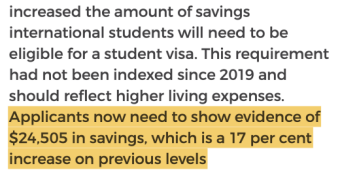 02 留学相关细节解读 那这次移民政策改革有哪些与留学相关的政策,又会对我们留学生产生什么样的影响呢? 澳洲联邦政府将严格把控国际留学生质量 在2022-23年澳大利亚51万净移民中,国际学生约占27万,为确保这些学生进入澳大利亚是真的学习,他们将很快面临更严格的要求。澳洲联邦政府将提高对国际学生的最低英语语言要求,并将实施更多限制,以阻止境内的“跳签”(visa hopping),以遏制在澳洲“长期临时”生活的移民人数。 ↓↓↓ 1.毕业生工签/学生签证语言要求上调 ![]() -485毕业生工签的申请语言要求,或将从原本的雅思6.0提升至6.5 -学生签证的申请语言要求,或将从原本的雅思5.5提升至6.0 *新的语言要求将在early 2024执行 2.毕业生工签时间缩短 ![]() 本科学位毕业后工作签证变为2年 授课硕士毕业后工作签证变为2年 研究型硕士学位工作签证变为3年 博士学位工作签证变为3年 换句话说, 原来的工签延长福利全部取消。 *新的485政策将在mid 2024执行 3.学签申请审核变严 ![]() 2022-23 年,持有第⼆次或后续学⽣签证留在澳⼤利亚的国际学⽣⼈数增⻓了 30% 以上,达到 15 万⼈以上,所以境内申请第二个学签,或485到期后再申请学签审核将会变得非常严格。 4.限制澳洲境内485工签转学签 ![]() 由于32%的临时毕业生签证持有者在签证到期后返回澳大利亚学习,以延长他们在澳大利亚的逗留时间,政府将采取行动,调整此类签证的工作权利期限和资格,临时毕业生工签持有者在境内将被限制转回学生签证。 *如果485到期了再申请学签,一定要申请比原来学历更高的学历课程。如果原本是master,485到期后只能申请phd。 5.GST系统正式上线,GTE退出历史舞台 ![]() 目的是更加客观的来判断申请人学习的真实性,为了配合新上线的GST学生测试,政府计划投资190万澳元来加强内政部的学生签证诚信部门,以减少对澳大利亚学生签证制度的滥用。 6.学签要求的资金证明上涨17%至24,505AUD ![]() 需要注意的是,澳洲移民局此次直接将工签申请人年龄由50岁降至35岁,对于想通过留学改变就业现状的大龄留学生们而言,时间必须要好好规划了! 03 澳洲博士移民 这一波改革举动,引发了留学生担忧,尤其是许多想通过申请澳洲博士实现移民的同学,面对这一轮移民政策改革很是担心。知知给你们一粒定心丸,其实澳洲很多地区是有专门的博士生申请通道的,以维州政府为例。 它开设了博士生申请通道,与其他类别的技术移民要求相比,条件放宽了很多。符合条件的博士学历持有者,可轻松获得一步到位的澳洲190永居签证。 走维州博士生移民通道的申请人,需要满足下面两个条件中的一个: 1. 过去五年内在维州大学完成博士学位,职业在移民局的大列表上。 2. 过去五年内,在海外院校或者澳洲维州以外地区完成的博士学位,职业在维州提名的职业清单上。 而且博士毕业生州担保无需提供工作证明 划重点:维州的博士生和海外的博士生都可以走维州博士生申请通道,毕业时间不超过五年即可,但是本州毕业生和非本州的毕业生对应不同的职业列表。 ![]() 而且最近澳洲新出了the Global Talent visa (全球人才签证)。适用于有国际认可的特别贡献或杰出成就的海外人才申请的澳洲永居签证。适合从事的领域包括艺术、体育、学术研究。 ↓↓↓ 诚然,澳洲移民政策对读博的留学生有一定影响。但总的来说,这一系列看似缩紧的移民政策变动,其实为那些真心希望在澳洲留学后打算移民的学生提供了更多的机会! 对于真心想移民的博士申请人而言,相信澳洲政府也不愿意错过每一个人才。 如果有任何关于澳洲博士申请的疑问,可以随时咨询,包括院校专业申请信息、申请条件、申请流程等等,必定知无不言~知知也会继续帮大家搜集澳洲博士申请的信息,可以随时关注推文信息哦! END 如果有任何博士申请的疑问, 可以扫码添加微信, 随时在线为你答疑解惑!💖 ![]() 博士申请小助理可直接扫码添加咨询添加时备注“公众号” ![]() ![]() ![]() ![]() ![]() ![]() ![]() |