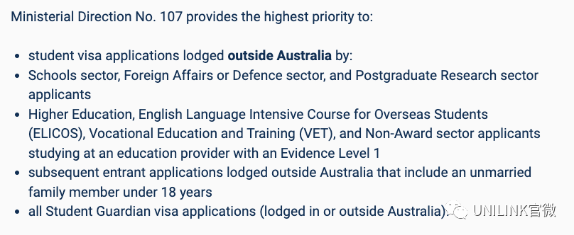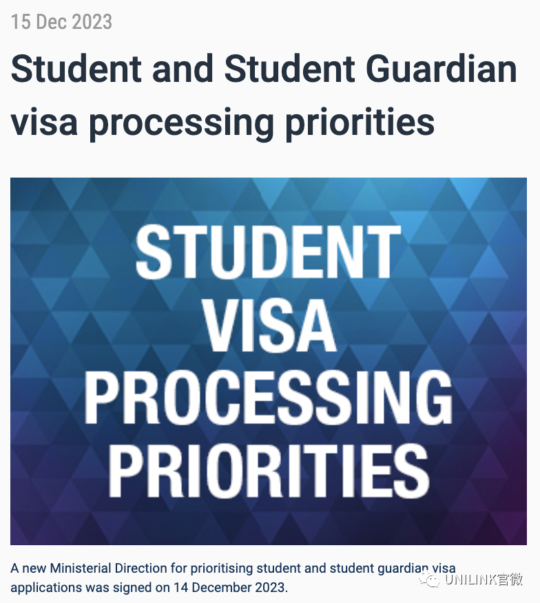 ![]() 更多文章推荐: -澳洲留学后有哪些途径可以留在澳洲? -澳洲留学,双学位和双专业如何选择?如何花一份钱修读八大双硕? -【收藏】专科生弯道超车的机会来了,最全澳洲专升硕课程总结! -【必看】澳洲八大工程硕士录取标准一览 -高起薪+好就业!澳洲传媒专业,超乎你的想象 (附院校推荐) -想申请澳洲硕士留学?这几条建议收藏起来! -澳洲本地排名出炉!墨大只排第七,悉大第15!竟是学生满意度原因 -【必看】澳洲学生签证提前体检攻略! -邦德大学建筑实践硕士/项目管理硕士学位双学位课程 | 2年即可拿到双学位,无需专业背景即可入读! -《2023澳洲大学指南》澳洲本土大学排行公布!UNSW硕士毕业生薪资最高! 上周,澳洲刚公布了一系列的签证新政策! 目的就是为了削减澳洲的净移民人数!包括减少留学生和临时工作签证持有人的数量。 澳洲政府他们希望来澳洲的全部都是来学本科、硕士的高质量留学生!而不是来读语言课程和技能课程,来半工半读的。 联邦政府表示,如果大规模削减移民计划看不到成效,可能会采取进一步措施限制留学生入境的人数。 对于这个消息,澳洲各大学正在动员起来,多位校长警告澳洲联邦不要对海外学生征税或设立留学生配额上限。反对过度的手段控制留学生来澳洲。 ![]() 于是,很多同学都有相关疑问——“那我的留学申请会不会受影响?” 说受影响肯定是有的,因为澳洲之后留学生签证申请的审核会更严格,语言要求也会增加!但是如果你是正常来读本科、硕士,别慌!问题并不大! 而且境外留学生签证现在属于高优先级别!这也代表之后申请澳洲的同学们签证审批速度比起之前反而更快了。 12月15号澳洲公布了新的留学签证审理优先级别公告。 ![]() 2023年12月15号开始,所有的学生签证审理都会按照这个优先级来审理。包括已经递交,还在审理中的申请。 可优先审理的境外学生签证申请类别包括: