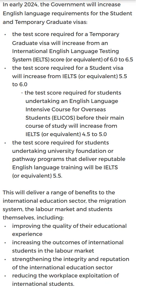 ![]() 当地时间11日,澳洲移民局发布了新的澳洲移民战略计划(Migration Strategy),现任澳洲政府将如何通过一系列政策,在2025年将移民人数降至25万人,同时,受到移民政策的影响,将收紧针对留学生和部分低技术工的签证要求,如国际学生需要更高的英语测试成绩,取消特定专业的留学生工签政策等。 ![]() 受新冠疫情影响,近两年许多外国学生和劳工无法入境澳洲。去年,澳洲政府为协助企业解决人手不足问题,增加了年度移民的人数。自解除防疫限制以来,澳洲入境人数激增,移民人数也随之增长,现澳洲政府为了缓解移民人数带来的住房,生活设施的压力,其目标是到2025年6月,将每年的入境人数削减一半至25万人,大致与新冠疫情前的水平一致。 我们针对International Education直接相关的重要信息整理如下: 留学生申请签证的语言要求变化