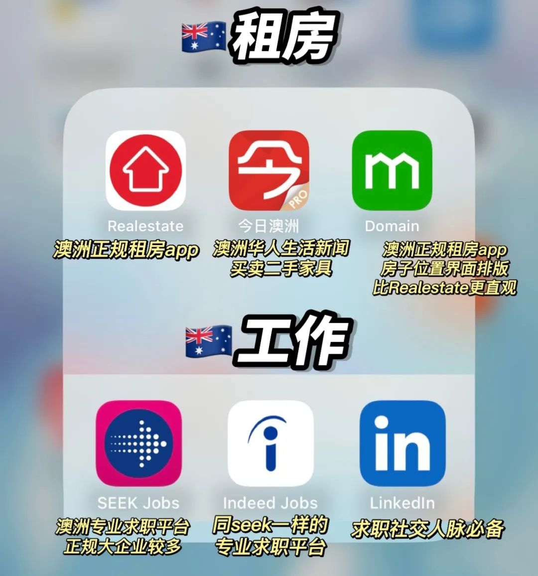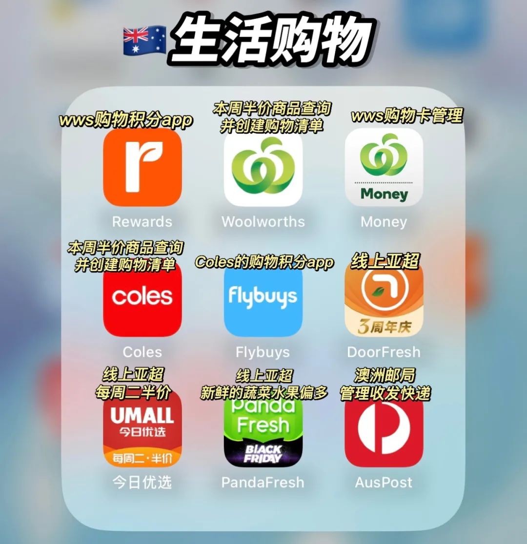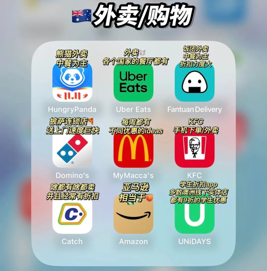 ![]() 导语 2023~这一年转眼就要过去了,很多小伙伴将要在2024陆陆续续地踏上了前往澳洲的旅途为了让大家可以顺利地从出门连钱包都不用带的祖国过渡到干啥都得靠自己的土澳今天Acic小姐姐就给大家带来澳洲生活28个实用APP的分享包含了日常生活,租房,交通,购物,看病满满的干货,让我们一起看下去吧~ 日常生活篇 ![]() 【Woolworth】超市app,可以看本周半价商品并创建自己的购物清单 【Rewards】wws的购物积分app,到达2000points可以兑换$10抵用卷 【Coles】超市app,用处同Woolworth一样 【Flybuys】Coles的购物积分app,也是用积分可以换礼品或者credit 【UMALL】又称今日优选(悉尼地区)相当于线上亚超,并且每周二半价 【PandaFresh】相当于线上亚超,新鲜的蔬菜水果偏多 【DoorFresh】线上亚超 【Auspost】澳洲邮局,可以在上面管理收发快递 交通出行篇 ![]() 【Skybus】墨尔本/霍巴特机场接送巴士app,可以直接在上面购票,使用时直接向工作人员出示二维码即可 【Jetstar】澳洲廉航app,用于机票购买和online check-in 维珍航空,Rex,澳航也有官方的app 【Uber】打车软件 【DIDI】国内的小伙伴懂得都懂,打车软件,平均比uber价格便宜一点 【Sydney】公交车实时位置查询,比Google Maps准 【Opal Travel】悉尼Opal卡充值管理 【Google Maps】必备地图app,相当于国内的高德导航。 【Service NSW】新州(悉尼)官方服务app 【Service Victoria】维州(墨尔本)官方服务app (之前covid时期用来扫码的) 作为澳洲所有八大名校的官方招生中心,ACIC为同学们带来优质的,专业的,负责的咨询和申请服务: 1、澳洲留学、升学、转学服务 2、学校最新资讯分享、奖学金信息、择校及选课资讯 3、学签、工签、及各类移民签证办理 4、语言培训、就业规划等服务 ![]() 看病保险篇 ![]() 【HotDoc】澳洲看病预约app 【myHealth】Allianz保险官方app,看病报销 【Live Better】Medibank rewards积分管理/兑换app 【Medibank】用于购买Extra的用户,可以随时查看自己的credit剩余 【Medibank OSHC】针对购买Medibank OSHC海外留学保险的学生, 用于看GP和处方药报销 【Priceline】同名药店membership积分管理/兑换app 外卖购物篇 ![]() 【Hungry Panda】熊猫外卖,中餐为主 【Uber Eats】外卖,各个国家的餐厅都有 【Fantuan Delivery】饭团外卖,中餐为主,折扣力度大 【MyMacca‘s】每周都有不同优惠的ideas,很划算 【KFC】手机下单/外卖 【Domino‘s】披萨连锁店app,送上门速度巨快 【Catch】家具电器/服装鞋子/生活用品/洗护产品,啥都卖并且经常有折扣 【Amazon】亚马逊 相当于🍑 【Unidays】学生折扣app,多数澳洲线下实体店都有9折的学生优惠 租房工作篇 ![]() 【Seek jobs】澳洲专业求职平台,正规大企业较多 【Indeed jobs】同seek一样的澳洲专业求职平台 【Linkedin】求职社交人脉app 【Realestate】澳洲正规租房app 【Domain】澳洲正规租房app,房子位置界面排版比Realestate更直观 【今日澳洲】澳洲华人生活新闻app,买卖二手家具 【END】 想要留学咨询、规划、申请、移民? ACIC是澳洲500多所院校的一级代理 澳洲八大官方招生中心 不仅提供专业的申请服务和材料准备 更与学校保持密切联系,随时跟进申请进度、最快拿下offer 高效、安心的咨询-申请-签证,一站式服务 选择ACIC 让你入读心仪名校,更有机会申请高额奖学金~ ![]() ![]() ![]() ![]() ![]() ![]() ![]() ![]() ![]() ![]() ![]() 左右滑动查看 ![]() ![]() ![]() ![]() ![]() 左右滑动查看 ![]() ![]() ![]() ![]() ![]() 左右滑动查看 ![]() ![]() ![]() ![]() ![]() 左右滑动查看 免费咨询,免费申请,免费续签 33年行业标杆,为你量身打造留学移民规划 更多澳洲留学、移民资讯,欢迎联系ACIC ! 网址:http://www.acic.com.au 干货好文需要分享 并告诉好友你在看 ![]() ![]() ![]() |