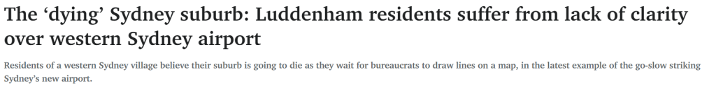《每日电讯报》1月8日报道,在等待官员们在地图上画线确定最终分区方案时,西悉尼一个小镇的居民感觉自己的社区正在消亡,这是所谓的“航空城”发展延误的最新例证。![]() 距离Badgerys Creek新机场的启用仅剩2年的时间,Luddenham的当地居民仍不知道他们将被允许对自己的房产做什么,因为他们仍在等待新州政府对该小镇进行重新分区。 据《每日电讯报》披露,柯民思政府在选举中承诺将优先对该地区进行分区,但将近一年后,焦虑的当地居民仍在等待答案,他们指出,学校入学人数的急剧下降证明了人口出现大规模外流。 新州政府表示,在联邦政府最终确定西悉尼机场周围的飞行路线之前,不能对该城镇进行重新分区,理由是噪音的潜在影响。 但由于新的飞行路线尚未确定,Luddenham的居民仍面临着痛苦的等待。 ![]() 西悉尼国际机场将于2026年开放。(图片来源:《每日电讯报》) “这一决定每拖延一天,就会危及城镇的未来。”Luddenham Progress Association副主席Wayne Willmington说:“社区居民已经对政府在选举中做出的确定城镇规划的承诺失去了信心,人们开始离开这里。” “这是一代人以来第一次,Luddenham公立学校将只剩下两间教室。” 新州反对党规划发言人Scott Farlow表示:“机场将在2年后启用,政府没有理由坐视不管。” “Luddenham的居民和业主应该知道他们可以如何处理自己的房地产,他们不应该被新州和联邦政府之间的政治斗争所束缚。” “现在是新州政府继续工作的时候了。” ![]() Luddenham居民Glen和Linda Marsden。(图片来源:《每日电讯报》) 据《每日电讯报》披露,尽管获得了超过5亿澳元的拨款,但最近几周,负责建设“航空城”的政府部门只开始建设了一个新的游客中心,而该部门——Western Parkland City Authority的员工人数在3年内几乎翻了一番。 联邦政府的飞行路线计划目前正在公开征求社区反馈意见。 根据该计划,到2033年,Luddenham每天可能会有多达99架飞机飞行,噪音最高可达60分贝——相当于谈话的声音,被认为是可以入睡的阈值。 Willmington说,Luddenham仍是一个“黑洞”,因为它是“航空城”中唯一一个尚未确定分区的地区。 “村庄和社区要生存,就需要人。” ![]() 西悉尼机场客运航站楼概念图。(图片来源:《每日电讯报》) 教育厅证实,Luddenham公立学校将于2024年从3班变为2班,理由是入学率下降,去年仅有45名学生。 Luddenham居民Glen Marsden说,当地居民正处于困境之中,在指导方针确定之前,他们甚至无法加盖奶奶房或进行扩建。 “目前,一切都停滞不前,每个人都在等待最终结果,这样他们就能有把握地向前迈进。” |