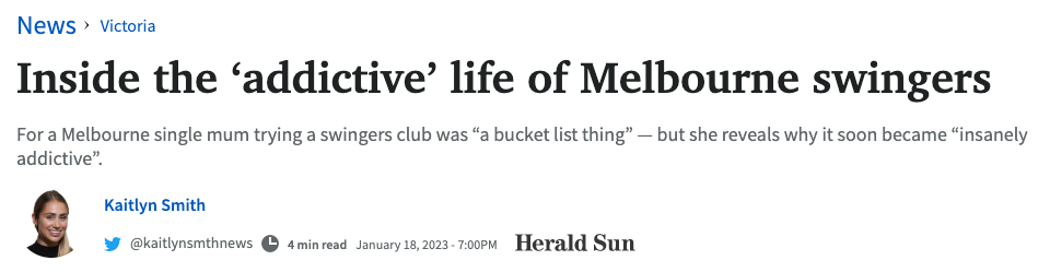 |   毁三观 澳洲人对于性的开放并不是什么秘密,比如维州就刚刚在不久前才正式将卖淫除罪化。 不过,和合法卖淫比起来,在维州的成人娱乐行业中,还有另外一个更加隐匿,也更加让人 “毁三观” , 并且,在维州还是完全合法的存在! 那就是传说中的 “Swingers Club” ,中文常翻译为 “换妻俱乐部” 。 相信单单就是听名字,大家也能理解为啥说是 “毁三观” 了吧。 而且由于很多人都没有亲眼见过,更没有亲身进过,这个地方也被披上了一层神秘的面纱。 不过,最近墨尔本有一位勇敢展现自己的年轻女子, 通过媒体大胆地讲出了自己的经历,向大众揭开了这层面纱...  在灯光昏暗的酒吧里与一个完全陌生的人对视,然后在公众面前分享激情时刻, 这是墨尔本女子Kayla Jones长期以来一直在幻想的事情。 年仅28岁Kayla是一位一人独自抚养两个孩子的单身母亲, 像许多母亲一样,作为一个女人,她自己的需求往往被被抛到了一边。 在过去十年的大部分时间里,Kayal的日常生活都被安排得满满的, 包括接送孩子上学、做兼职、做家务和参加课外活动等等。 在与结婚5年的丈夫和平分手后,她终于鼓足勇气,踏上了自我发现之路。 当被问及是什么吸引她去 “换妻俱乐部” 时,Kayal表示: 可能是因为这是她遗愿清单上一件想要去做的事吧... Kayal表示自己平常很忙,没有时间和人约会,也不想进入什么和别人的承诺中。 而 “换妻俱乐部” 完美的解决了她的需求, 在这里她可以和很多人一起玩乐,也不用费力气进行社交和搞人情世故。 Kayal第一次参加活动,是和一位网上认识的女孩一起去的。 而对于这第一次的经历,她用一句话来形容: 瞬间就上瘾了...  对于自己的经历,Kayal是这么介绍的: 进场的时候并不需要等很久,会有保安检查身份证,然后支付一笔入场消费就行。 根据场地的不同,收费的标准也不一样, 夫妻、情侣们有时候需要支付差不多100澳元, 单身女性只需要支付很少的钱,或者在一些俱乐部还是完全免费的。 而单身男性就比较不受待见了,经常连进都不允许进,或是要支付好几百刀入场费。 对于很多人最为好奇的,进去之后究竟会发生什么,Kayal这么说: 很多人都有这样的误解,以为一进去就得疯狂地不停开炮,但事实绝对不是这样的。 这就像一个酒吧,我如果不想喝酒,也可以就点一杯果汁, 然后坐下来,开始慢慢打量别人。 在这里,客人可以进行任何活动,或者展现自己各种癖好 无论你内心想要什么,只要是两厢情愿的,就可以。 室内有十几个私人隔间,供想玩的人使用。  在里面,一个大家都默认遵守的潜规则是: 如果隔间门是开着的,这意味着你可以观看或进来参与, 但如果它是关着的,那么就意味着这是一个私人时刻。 当然,也有那种所有人都可以随意进出和进行集体活动的大厅。 Kayal表示她每次来的时候,都是先看别人, 等到放松下来,感觉舒服了以后,再开始找自己喜欢的东西。 这是她现在最喜欢的事,在周末她可以不需要陪伴孩子, 所以可以换上漂亮的衣服,喝上一杯,再收获一番享受,这真的很棒... Kayal称俱乐部里面是一个可以让你得到放松的地方,并且有一套规则保证一切都保持有序。 在俱乐部内是不允许使用手机的。 如果是结伴来的俱乐部,必须要一起离开。 安全行为也永远被放在第一位, 个人卫生被着重强调,并且每个角落都可以随手拿到安全工具。 另外,Kayal还表示想要取乐时也不需要有容貌焦虑, 因为绝大多数的俱乐部,都没有对于外貌的要求。 不过,如果是那种私人派对的话,就会比较排外一些。 Kayal表示她曾经参加过一个私人派对,就必须事先发送照片, 而且还得是全身照片,才会被允许参加。 有一次,她曾经和其他30多个人一起围观一对情侣, 到了结束的时候,大家都集体鼓掌欢呼... Kayal表示墨尔本的几家知名俱乐部她都去过, 并且表示不同的地方也都多少会有一些不同的 “特色” 。 里面的很多设施,也是非常具备创意,没见到都完全无法想象...  对于来取乐的都有什么人,Kayal表示: 来的人从20多岁到60多岁的都有 有那种有特殊癖好的老男人,也有想要给生活增添情趣的年轻夫妻... 甚至还有一些人是从很远很远的地方专程来的... 对于自己的选择,Kayal也直白地表达了自己的真实想法: 我做了我从未想过我会做的事情,这就是我喜欢俱乐部的原因。 当你在那里的时候,你会有一种自由的感觉。 有的时候,也会碰到我认识的人,但我从来都不觉得尴尬。 这也许伴随着一点耻辱,但这就是一种不同的生活。 它被看到了,却没有被真正谈论,很多人都是关起门来默默进行。 现在是2023年,每个人都过着自己的生活,拥有自己的性取向,每个人都可以尝试。 最后,小微思来想去,也就只能憋出一句话: 澳洲人可真是的有够大胆的... 来源:Herald Sun    |