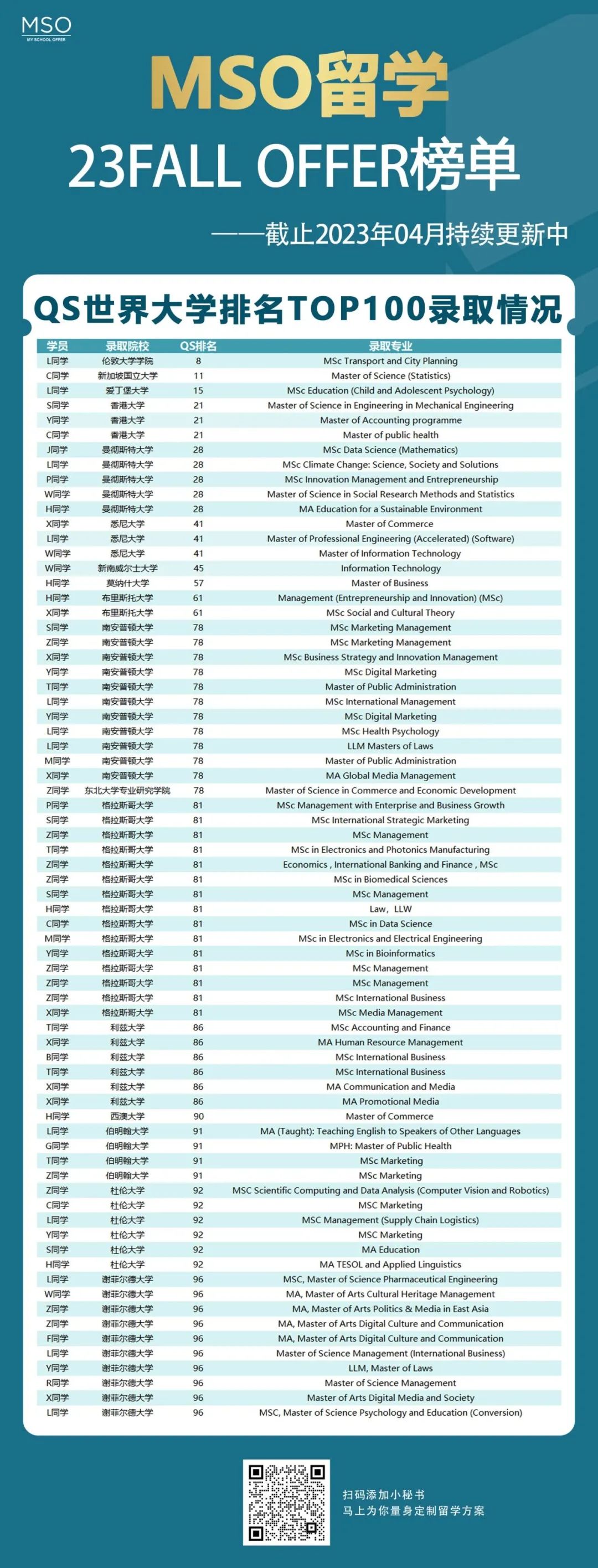 ![]() 澳洲高校专业设置灵活,很多1.5-2年制传媒硕士是不需要有本科相关背景的,对于想要跨专业申请的同学来说非常友好!今天就为大家介绍一下,澳洲硕士哪些专业不需要本科背景,均分60即可申! ![]() 01 塔斯马尼亚大学 University of Tasmania ![]() 塔斯马尼亚大学的教学、研究和学生服务设施一流,连续获得学生服务国家奖和澳洲大学最高研究奖。塔斯马尼亚大学是澳大利亚高等教育委员会推荐的最有研究成就的澳大利亚前十所大学。 接受大部分课程雅思 6.0,有线上内测可申请语言班和正课 以下专业接受本科背景、均分 60 以上、直入雅思 6.0(6.0): ▪ 市场营销管理硕士 ▪ 旅游、环境与文化遗产硕士 ▪ 会计专业硕士 ▪ 农业与食品科学硕士(专业) ▪ 全球物流与供应链管理硕士 ▪ 信息技术与系统硕士 ▪ 海事工程硕士(专业) ▪ 专业工程硕士(专业) 02 斯威本科技大学 Swinburne University of Technology ![]() 斯威本科技大学亦以创新而闻名,是澳大利亚唯一一所应邀成为欧洲创新大学联合会(ECIU)成员的大学。大学开设众多专业,包括工程学、航空学、商学、设计、IT、物理、传媒等。 接受大部分课程要去本科背景、均分 60 以上,有线上内测可申请语言班和正课 以下为常申请专业: ▪ 设计:3D 打印,交互,设计管理与策略,计算机辅助,▪ 视觉化等 (有相关背景,无需作品集) ▪ 商业信息系统 ▪ 数字化商业管理 ▪ 供应链创新 ▪ 企业与创新 ▪ 财务与金融 ▪ 人力资源管理市场营销 ▪ 网络安全 ▪ 数据分析,信息系统,移动与云计算,网络管理,软件开发,软件测试,系统安全与反黑客 ▪ 信息技术 (专业计算) ▪ 理学 (网络系统) ▪ 先进制造、土木工程、电子电气工程、机械工程、网络系统与通讯、结构工程 ▪ 工程管理,建筑管理,结构工程与设计,机械工程,制造工程,可持续制造,再生能源,机器人及机电一体化 03 弗林德斯大学 Flinders University ![]() 弗林德斯大学是澳大利亚创新研究大学联盟成员,是一所充满活力、具有现代气息和进取精神的现代化的大学,弗林德斯大学以其出色的教学和科研工作而享誉全球。 有线上内测可申请语言班和正课 以下专业接受本科背景、均分 60 以上、直入雅思 6.0(口语和写作 6.0): ▪ 工程硕士(生物医学) ▪ 工程硕士(土木) ▪ 工程硕士(电气与电子) ▪ 工程硕士(机械) ▪ 计算机科学硕士 ▪ 计算机科学硕士(人工智能) ▪ 数据科学(硕) ▪ 地理空间信息系统硕士 ▪ 信息技术硕士 ▪ 信息技术硕士(网络与网络安全系统) ▪ 媒体与传播硕士(1/1.5 年) ▪ 影视与媒体制作硕士(1-2 年) ▪ 虚拟制作(1-2 年) ▪ 认知心理学与教育实践硕士 ▪ 包容与特殊教育硕士 ▪ 教育领导力硕士 ▪ 环境卫生硕士 ▪ 环境管理与可持续发展硕士 ▪ 理学硕士(地下水文学) ▪ 理学硕士(研究) ▪ 理学硕士(水资源管理) ▪ 国际关系硕士 ▪ 公共管理硕士 ▪ 公共政策硕士 ▪ 公共政策与管理硕士(全球) ![]() # 关于MSO # 智选升学平台 MSO留学是提供一手的海外院校资讯、专业留学申请及背景提升的自助留学服务平台。自成立以来,MSO留学累计服务9000+名学生,已帮助1000+名客户成功入读QS排名前100的院校。 MSO名字来源于其英文名 My School Offer,MSO自助升学报名平台,始终秉承着“自己升学自己选”的理念,依托公司强大的背景,结合线上AI大数据辅助选校和线下专属留学顾问贴心指导,为客户提供全面清晰、公开透明、专业负责的一站式留学服务。 ![]() video: https://mp.weixin.qq.com/mp/readtemplate?t=pages/video_player_tmpl&action=mpvideo&auto=0&vid=wxv_2423979600189063169 OFFER展示 ![]() 想体验自己升学,自己选,以最快的方式踏上海外升学之旅,选择MSO留学。 作为省心的智能选校平台,MSO留学从定制化留学规划,到软硬背景的提升,专业负责的MSO团队指导团队,为你提供一站式留学服务。 👉留学资讯👈 1.澳洲热门院校接受哪些线上语言成绩?快来看看吧~ 2.2023&2024澳洲本科+硕士奖学金汇总 3.这些澳洲硕士专业不限本科背景!跨申也很友好! 4.赴澳洲留学最全行前攻略!一定要做好这些准备! 5.2023年澳洲八大Conditional COE政策汇总 ![]() 发现“分享”和“赞”了吗,戳我看看吧 |