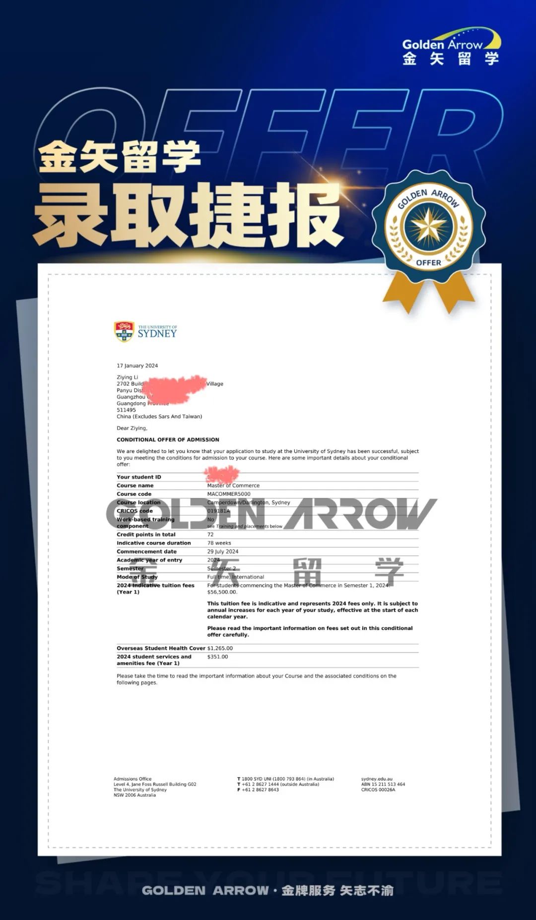 ![]() ![]() ![]() ![]() 随着申请季的进行,录取的消息也接踵而至,下面为大家分享澳大利亚悉尼大学的Offer! ![]() 悉尼大学-商业分析 ![]() ![]() 学校介绍 悉尼大学(The University of Sydney),简称“USYD”或“悉大”,位于澳大利亚悉尼,是南半球最古老的大学,位列砂岩学府、环太平洋大学联盟、澳大利亚八校联盟、亚太国际贸易教育暨研究联盟、英联邦大学协会、全球高校人工智能学术联盟、新工科教育国际联盟、全球管理教育联盟(每个国家仅一所大学入选),亦是AACSB、AMBA和EQUIS认证大学。 悉尼大学成立于1850年,是大洋洲和南半球的第一所大学,是世界上最早根据学术成绩录取学生的大学,是世界上最早招收女生的大学,亦是大英帝国最早成立的公立大学之一,拥有悉尼大学商学院、悉尼大学法学院、悉尼大学医学院、悉尼音乐学院等著名学术机构;皇家阿尔弗雷德王子医院为全澳最佳医院;悉尼大学图书馆为南半球最大的图书馆;尼克尔森博物馆为南半球最大的文物博物馆。 悉尼大学培养了7位诺贝尔奖和克拉福德奖得主、8位澳大利亚总理、23位最高法院法官、101位罗德学者、联合国大会首任主席、国际法院院长、两任世界银行总裁、麦格理总裁、麦肯锡董事长、澳大利亚首富、英国皇家学会主席、英国医学会总裁、IEEE总裁、美国责任医师协会总裁、WIFI之父、系统功能语言学创始人、人工耳蜗发明人、次优理论发明者、C4.5算法发明人等知名人士,悉尼大学也是澳洲拥有最多亿万富翁毕业生的大学。 悉尼大学位列2024QS世界大学排名世界第19位,2023年U.S. News世界大学排名世界第28位,2022年QS毕业生就业竞争力排名世界第4位。 ![]() 2023-2024年部分录取如下—— (以下为金矢留学2023-2024年录取信息,可点击查看) 金矢留学美国本科录取喜报!恭喜金矢学员东北育才高中部周同学/新加坡高中白歆于/陈希林同学等12人收获华盛顿大学录取!!!金矢留学美国本科录取喜报!恭喜金矢学员东北育才外国语沙同学等12位同学获得美国公立常青藤院校加州大学戴维斯分校录取!!! 金矢留学美国硕士录取喜报!恭喜金矢学员杨则彤同学获得美国常青藤院校布朗大学数据分析专业录取!!! 金矢留学美国硕士录取喜报!恭喜金矢学员吴静雯收获波士顿大学传媒学硕士录取!!! 金矢留学香港本科录取喜报!恭喜金矢留学育外欧美部杜量恒同学获得香港中文大学法律专业录取!!! 金矢留学香港本科录取喜报!恭喜东北育才外国语学校小杜同学再次收获香港理工大学的本科录取,两个专业都收到录取!!! 金矢留学美国硕士录取喜报!恭喜金矢学员李佳怡收获约翰霍普金斯大学录取!!! 金矢留学美国硕士录取喜报!恭喜康馨予同学获得美国USNews排名第9位JHU约翰霍普金斯大学录取!恭喜沈阳金矢学员-东北育才外国语学校欧美部尹一艨同学被新加坡国立大学CS本科录取!金矢留学学员加拿大多伦多大学录取喜报!恭喜金矢学员收获多伦多大学生命科学专业录取!!! 金矢留学法国商学院本科录取喜报!恭喜沈阳外国语孙同学被法国ESCP欧洲商学院录取!!! 金矢留学英国硕士录取喜报!恭喜谈静怡同学获得英国名校曼彻斯特大学硕士录取! 金矢留学英国硕士名校录取喜报!恭喜乐雨同学收获英国帝国理工大学风险管理和金融工程硕士录取!!! 金矢留学英国G5硕士录取喜报!恭喜吉林大学林泓梵同学获得QS世界大学#6 帝国理工学院录取!!! 金矢留学新加坡硕士名校录取喜报!恭喜张同学收获新加坡南洋理工大学分析学硕士录取!!! 金矢留学美国硕士名校录取喜报!恭喜康馨予同学获得美国顶级院校罗彻斯特大学录取且25%的学费减免奖学金!!! 金矢留学美国硕士名校录取喜报!恭喜小章同学拿到了美国藤校哥伦比亚大学电气工程专业的录取!!! 金矢留学美国硕士名校录取喜报!恭喜丁娈群同学获得常青藤院校Columbia University哥伦比亚大学硕士录取! 金矢留学香港本科录取喜报!恭喜刘畅芒同学和冯萧晗同学收获QS世界大学排名#25的香港大学本科录取!!! 金矢留学加拿大本科名校录取喜报!恭喜东北育才外国语学校欧美部刘同学收获加拿大UBC英属哥伦比亚大学的录取!!! 金矢留学英国本科名校录取喜报!恭喜李同学获得剑桥大学录取!!!金矢留学香港本科录取喜报!恭喜东北育才外国语学校欧美班的杜同学收获港前五名校香港理工大学和香港城市大学的录取! 金矢留学英国硕士录取喜报!金矢宝宝被英国G5院校IC帝国理工学院录取啦! 金矢留学英国硕士录取喜报!恭喜金矢宝宝获得剑桥大学硕士录取! 金矢留学美国硕士录取喜报!恭喜邹乐禹同学获得美国顶级名校NYU纽约大学录取且每年4000美金奖学金! 金矢留学英国硕士录取喜报!恭喜仇骏同学获得英国G5名校LSE伦敦政治经济学院录取! 金矢留学录取喜报!恭喜王同学获得英国LSE硕士课程录取! 金矢留学加拿大本科录取喜报!恭喜育外杜同学获得加拿大UBC大学录取! …… ![]() |