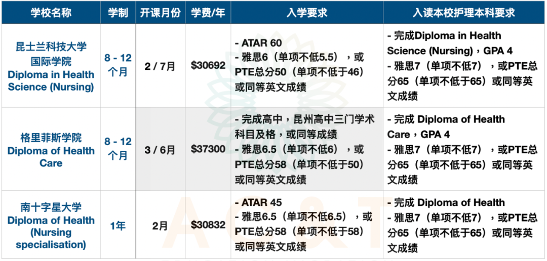 Diploma of Health (Nursing方向) 热门课程详情: ![]() ![]() 注意❗️大家需要把衔接课程Diploma与TAFE等学校开设的Diploma of Nursing (Enrolled Nurse)稍作区分。 Diploma of Health (Nursing方向):
