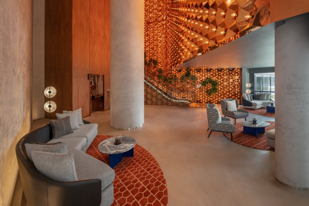 悉尼W酒店 W Sydney ARCHITECTURE. INTERIOR. MASTER. Urban Architecture Interior House Product ![]() DESIGN. INSPERATION. LATEST. 悉尼 W 酒店目前是全球 60 多家 W 酒店中规模最大的,它不仅承袭了 W 品牌标志性的奇特设计元素,还为悉尼的游客和居民带来了一场全新的奢华体验。 01 项目概览 PROJECT OVERVIEW 悉尼 W 酒店坐落于澳大利亚悉尼达令港的"The Ribbon"内,毗邻悉尼中央商务区、国际会议中心和海港娱乐区,现已成为悉尼市的标志性目的地。 ![]() 酒店的建筑采用了倾斜的造型和圆润的曲线设计,其巨大的玻璃立面更是映照着天空和城市景观,这种独特的建筑风格在视觉上令人印象深刻。 02 室内设计 INTERIOR DESIGN W 酒店一直以其与众不同的设计和俏皮的奢华而著称,而悉尼 W 酒店绝对不例外。从大堂的蜂窝状铜镜墙到泳池的水生主题马赛克,再到 29 层的 WET Deck 区域(W 标志性的派对和泳池区),每个细节都散发着独特的奢华感。 ![]() # 大堂 #悉尼 W 酒店的大堂以「未来黑色」为主题,大堂中间设有蓝色圆形沙发,成为住客抵达时的焦点。该区域的设计灵感源自悉尼港和海滩,使用了航海白色和海军蓝色的色调,为大堂带来海洋氛围,同时向澳大利亚海港传统致敬。 ![]() 大堂还拥有独特的蜂窝状铜镜墙,营造出了现代感和奢华氛围。此外,地上的地毯颜色和图案与蜂窝状铜镜墙相呼应,使整个大堂空间在设计上呈现出统一和协调的感觉。 ![]() 运用蜂窝状铜镜墙,将电梯间与楼梯做划分。 ![]() # 酒店餐厅 #W 酒店内包含了多个餐厅,包括 BTWN、Living Room、29/30 等,每个餐厅设计都是独特而富有创意的,不同场所提供独特的美食和饮品选择,以带来丰富多彩的用餐体验。 ![]() BTWN 餐厅的设计融合了城市美学和夜市氛围。主厨 Chris Dodd(曾在 Aria、The Blue Door 和 Bistrot Plume 餐厅工作)主理,以当地食材和可持续发展理念为基础,为住客烹制新南威尔士州的风味佳肴。 ![]() 这里的装饰和氛围将住客带入了城市的热闹中心,是悉尼 W 酒店里的一处独特之地。 ![]() 位于大堂附近的 Living Room 餐厅,主营清酒、烧酒和亚洲美食。酒吧拥有绝佳的达令港景观,当夜幕降临,这里也会转变为一个充满活力的社交空间。 ![]() 29/30 是一个两层的酒吧,拥有超级游艇风格般的装饰,呈现出现代奢华的氛围。酒吧从日落时分开始提供复古香槟产品、小吃和开胃酒等美食。 ![]() 29/30 将蓝色的海洋和天空元素与红色的热情和活力相结合,为住客呈现出富有层次和对比的用餐环境。 ![]() ![]() 蓝色创造出令人陶醉的空间,而红色则被用作精致的点缀。 ![]() # 客房设计 #酒店内拥有 588 间海洋风格的客房,其中包括 162 间套房,每一间房都传承了 W 品牌的标志性风格。![]() ![]() 客房设计虽然延续相同的风格和元素,但没有两间客房是相同的。整体设计融合了现代奢华和澳大利亚本土文化元素,无论是室内的色调、家具还是装饰,都充分展现了 W 酒店的独特魅力。 ![]() 套房的室内设计灵感源自悉尼的港口位置,以海洋为主题,这一设计理念将住客带入了海洋的世界,有种宛如置身于海滨度假的感觉。 ![]() # 配套设施 #W 酒店内还有多种配套设施,以确保住客在住宿期间拥有丰富的体验。 ![]() 位于 W 酒店 29 层的 WET Deck 就是一个放松身心的绝佳场所。这里设有一个长达 30 米的露天温水无边泳池,WET Deck 还提供健康新鲜的食品,让住客在泳池畔度过一个完美的休闲时光。![]() AWAY® 水疗中心的室内拥有温馨的色调、柔和的照明和舒适的家具,营造出宁静和舒适的氛围。水疗中心内设有多个淋浴、桑拿浴室和蒸汽浴室等设施,还额外提供了五间护理室,美甲和足疗室,以及休闲区和美容吧等放松选择。![]() ![]() 在这里住客可以享受各种护理项目,放松身心,焕发活力,享受舒适时光。 ![]() ![]() FIT 健身房配备了顶级泰诺健(Technogym)的设备,包括有氧运动设备、自由重量器械等各种设备,以满足不同的健身需求。 ![]() W 酒店内还拥有专门用于举办活动和会议的场所,为商务旅客和活动策划者提供了完美的场地选择。 这个场所包括了宽敞的大厅、多功能会议室和露天活动区域,无论是举办会议、庆典、婚礼还是其他社交活动,都可以满足活动需求。 ![]() // 一起设计新媒体矩阵将我们设为「星标★」才能第一时间收到推送 |