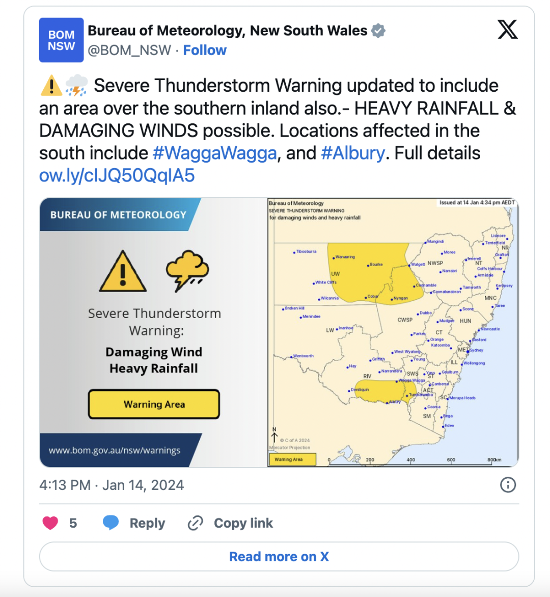 注意啦! 点击 ![]() 蓝字"悉尼辣妈帮"→ 点击右上角“...”→ 点选“设为星标 ★” ,不错过任何精彩! ![]() ![]() ![]() ![]() ![]() ![]() ![]() ![]() ![]() ![]() ![]() ![]() ![]() ![]() ![]() ↑↑已有100000+悉尼妈妈点击关注我们↑↑ 澳洲再迎雷暴 西部和东南部都将出现强降雨 悉尼和墨尔本大雨连下一周 洪水警告再发 雷暴降临 悉尼迎超强降雨 ![]() 妈妈们,咱们现在是又被警告了!官方称: 要做好准备迎接一周的强降雨 气象局已发布洪水警告 整个Rhodes现在街道都可以养鱼了 报道中称,Weatherzone的气象学家表示,一个沿海低压槽与一股湿润的东南气流相结合,预计今晚沿海和内陆地区将出现更多阵雨。 据预测,Batemans Bay以北将出现潮湿天气,Illawarra、而悉尼大都会地区和中央海岸不幸中招,成为最有可能出现强降雨的地方。 ![]() 不仅如此,强降雨增加了今日上午和下午发生洪水的可能性,当局发出警告称,受洪水影响,民众的通勤可能受到影响, SES在过去12小时内接到了50个求助电话 插播一个消息~ ![]() 辣妈帮已经为 悉尼新手妈妈们建立了超级实用的辣妈帮龙/兔①②/虎①②③/牛①②③宝宝群幼儿园群,小学群,私校群,母婴二手群,新移民交流群等等...想入群的妈妈们,现在开始扫码吧! ![]() 在过去24小时内,Terrey Hills的降雨量达到了74毫米,而悉尼西部一些地区的降雨量预计可能高达120毫米。 “如果雷暴和阵雨继续发展,沿海及其附近地区的降雨量可能增值80至120毫米” ![]() 在新州海岸的其他地区和内陆地区,降雨量预计将在30至60毫米之间,中北部地区可能会出现几场单独降雨,降雨量或将超过100毫米。 目前,悉尼的情况有些“悬”,数条街道被迫关闭,包括Manly区的Wakehurst Rd和Rhodes区的Concord Rd。 与此同时,由于North Connex Tunnel附近发生车祸,M1高速North Wahroonga路段的南向交通繁忙。 在过去24小时内,Terrey Hills的降水量达74毫米。据预计,西悉尼部分城区的降水量可能达到120毫米。 ![]() Weatherzone预计,到今晚,Illawarra、悉尼和中央海岸的降雨将减弱为阵雨,而中北海岸将在下午和晚上下大雨。 Weatherzone表示:“潮湿的天气将持续至明日,新州海岸和邻近内陆的降水量预计将达20至40毫米。” 总结来看,未来几天,悉尼甚至是新州的天气让人担忧。 ![]() 特别是悉尼和中央海岸城市,不仅降雨一直持续,还可能有大规模雷暴出现。 直到本周周末,天气才会彻底好转!妈妈们也要警惕因为降雨而出现的洪水,注意政府信息,避免错过撤离的最佳时间! ![]() (^_−)❤ 以上为正文内容 ❤ 辣妈帮客服梦之队 ❤ ![]() ❤ 辣妈帮广告联系:Sydneydida ❤ ![]() 悉尼辣妈帮 澳洲最火妈妈社群平台 ![]() tui 推 jian 荐 re 热 gē 文