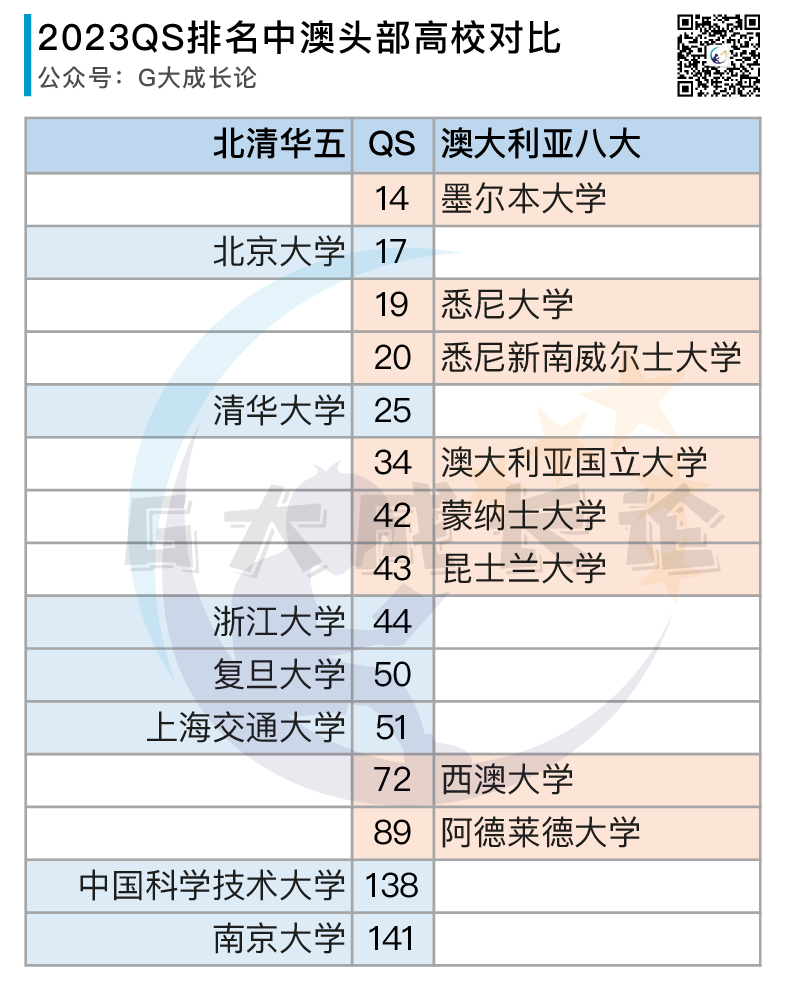 姚老师毕业于上海交大,23年工作经验的资深国际教育规划师,帮助3000多名学生国际升学,美国大学考试局国内指定合作方。曾先后任职于教育部中国留学生服务中心、上海教育国际交流协会,等。 G大成长论国际化教育合伙人 提到澳大利亚留学,跳出来的第一印象通常是水。学校排名水,科研能力水,甚至这个国家地理环境都四面环水,水中水。 姚老师日常做留学咨询里,每次讲到澳大利亚,或多或少都会有一部分时间用在应对这个问题。有时候甚至这个问题就会纠结掉大量的时间,以致真正有意义的对话都没时间开展。 所以我就想写一篇文章来阐述我的想法。 首先我们要清楚,讲一个国家的留学“水”,是一个观点,而不是事实。我想G大成长论的读者,应该都能区分观点和事实这两者之间的差别,我不展开解释。 既然这是一个观点,那就免不了受刻板印象(sterotype)的影响,程度多少而已。 所以比起“澳大利亚留学是否水”这个问题,姚老师更想回答的问题是:这种刻板印象是怎么来的? 姚老师日常工作中听到的关于澳大利亚留学水的刻板印象,主要是这两个点: a. 入学门槛低 在国内普通甚至中等偏下的学生,仅仅通过高考总成绩70%左右的分数就能被澳洲八大录取,非八大则更容易。 下图是2023年QS排行里北清+华五vs澳洲八大的对比: ![]() 国内录取北清华五的考生是什么水准,各位心里都有数,高考最低最低580起。而我们之前给出过用上海高考成绩可以申请的海外高校里,上述澳洲八大,520、460,甚至430就能申。 然后你说这两类学校是一个档次。 任何人遇到并处理这类信息的时候,直觉反应一定是:那这些学校也太水了。这种质朴的感受很正常,姚老师自己也曾经有过这种感受。 我甚至有一次实在忍不住,直接问八大之一的一位招生官:“你们知道你们招的都是中国教育制度里的失败者吗?” 那位招生官的答案很“澳洲”:我们崇尚Fair Go,机会均等。人们生命中的成就应该是他们的才能,工作和努力的产物,而不是他们的出生背景、先天条件,或是此前的绝对学术能力。所以只要一位学生有求知求学的诉求,我们会在对方符合基本条件的前提下,尽可能给予机会。 但是,那位招生官继续讲,我们会给那些学生机会,让他们可以进来读书,但能不能毕业是另一件事情。 对留学略有了解的家庭,基本都知道澳洲大学超高的挂科率,在澳洲大学读书的学生都有每次考试扒层皮的痛苦。 我们以前对这件事情打过一个比方:这就像你摇号中了民办,名额分配进了市重点。你不会说民办水,市重点水。你会感谢政策给了你一次进入按照你的实力无法进入的学校的机会。 至于你进了市重点,进了民办以后学习很痛苦,那完全就是题中因有之意。 然而我们也的确看到一些用阴谋论来思考澳洲大学的“宽进严出”评论,推导出澳洲大学成想钱想疯了,要赚重修的钱。而往往读不好被赚了重修的钱的学生,他们最有意愿来传播这种阴谋论,也就导致社交媒体的舆论场被这样的阴谋论所占据。 另外由于国际外交方面的一些事件,导致前几年两国从官方到民间都有一些龃龉,也导致国内全社会层面对澳大利亚的负面印象。这中基底性质的全方位负面印象,和上述元素互相叠加,互相放大,就形成了澳洲大学“水”的刻板印象。 其实这几年中国留学生在澳洲留学生的比例在逐年下降,印度、越南、新加坡、欧洲甚至美国留学生比例在大幅度提升。 本条最后一个小点,是我们之前聊过的:留学生作为自费生录取比本国就是有相对优惠的待遇,其实这个现象我们国家也同样存在。国内很多人拿着外籍再“回国”留学,不就是利用这个政策优势吗? 我们的清华北大招收外籍留学生要求也是相对降低的,那也说明清北“水”吗, 不见得吧。 ![]() b. QS排名高 澳洲高校近年来QS排名狂飙,以致这届评论区在讲澳洲大学水的同时,还要把QS排名打上水榜的标签。 姚老师是这样思考这件事情的:首先作为一个人工做出来的榜单,无论算法设计得多么精巧,始终都会挂一漏万。尤其是QS具有过多主观指标和商业化指标而受到批评。 然而作为唯一获得联合国教科文组织(IREG)国际专家认证的排行榜,也是我国政府目前参考的主流榜单。其学术声誉调查是根据全球8万多名知名学者的反馈,雇主声誉调查由4万多所全球企业的人力资源部门的反馈结果所得出。 你可以把他理解成西方主流社会的集体“刻板印象”:从这些重要受访者的日常体验中总结出一个世界范围内的认知。这点我来举一个具体的例子: 国内排名第一的北京大学(QS17)和澳洲排名第一的墨尔本大学(QS14)做对比。我们不难发现,二者学术声誉的得分相差无几,分别是99.4和98.4。但在国际研究网络方面的得分,墨大(97.2)远 超北大(43.2)。这意味着墨大在国际科学社区建设,国际研讨会和讲习班的组织等方面都有重大贡献,至少这些受访者能感受到,体验过,或者至少认知到。 而这些受访者,通常都是未来对我们潜在留学生毕业以后就业或者继续升学有重大决策权的人。用他们的集体“刻板印象”做出榜单,来对我们留学策略进行指导,姚老师觉得没毛病。 这部分的最后我再来说说科研。在大部分国人的认知里,认为土澳是一个没文化底蕴没有科技含量只有自然景色的流放囚徒的国家。 好,我没办法对抗这种根深蒂固的标签式认知。但是我可以列数字:澳大利亚至今获得