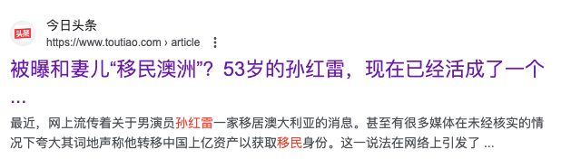 |  今日话题 最近, 孙红雷被传移居澳洲, 作为知名的艺人, 引发大量媒体关注。   今年年初, 孙红雷被曝多次现身墨尔本, 还有网友晒出合影。  据一些媒体报道疑本人回应: 是为了追求更广阔的发展机会。 澳洲风景宜人, 教育福利待遇优越, 吸引了很多的移民, 甚至明星也扎堆澳洲... 01 网传孙红雷移居澳洲,此前多次现身澳洲街头 澳洲风景宜人,吸引了很多的移民,甚至明星也扎堆澳洲。  最近一段时间,孙红雷被传移居澳洲,作为知名艺人,自然受到大量媒体和网友的关注。  其实关于这一消息,始于今年年初一些网友晒出来的照片。 今年2、3月,有华人发帖称在墨尔本偶遇孙红雷,并成功与之合影留念。  (图片来源:网络) 随后相关的照片在网上传开,这也引发了网友的关注,怀疑孙红雷是不是移民了。 更加引发猜测的是,就在大约一个月后,孙红雷再次被曝出现在墨尔本。  这一次,还有一名年轻女性陪同,疑似是孙红雷的妻子。 两人在街头散步,看起来十分恬适自在。  (图片来源:网络) 看位置,似乎就在CBD。然后又有网友晒出照片,可以确定孙红雷和妻子就在QV逛街。      (图片来源:网络) 从图片上看,夫妻俩身穿休闲装,两人在街头散步,融入了繁华的闹市。看起来舒适自在,对当地的环境冒似很熟悉。 02 据传本人回应传闻:为了追求更广阔的发展机会 有关孙红雷移居澳洲的消息,引发了大量媒体和网友的关注。 其实,作为一个中文演员,不太可能是为了寻求演艺发展。毕竟离开中文的土壤,中国演员很难在海外有大作为。 如果说是为了子女接受教育,这倒有些道理。 孙红雷的女儿Addy,2017年出生,目前的年龄正是澳洲等西方国家的入学年纪。  据悉,网传孙红雷的回应是,为了追求更广阔的发展机会,但并没有说明是移民还是移居。 一些网友猜测,孙红雷移居澳洲的可能性更大一些。  但如果是在国外定居生活,倒是一件轻而易举的事情。  据传他也已经在墨尔本购置房产,而且孩子也进入了当地的学校就读。 孙红雷在北京、上海等很多城市都有房产。北京是大别墅,据传面积高达700平米,价值上亿。  (图片来源:网络) 在上海的房产是江景豪宅,在家就能看到黄浦江的景色,据说均价12万每平米。  (图片来源:网络) 甚至孙红雷在法国也有房产,据说还是直接可以看到埃菲尔铁塔的那种。  (图片来源:网络) 除了房产之外,有消息称,孙红雷参股投资的企业有11家,每家的规模几百万、几千万不等。  03 众明星扎堆澳洲 近几年,很多名人、明星都在澳洲,包括知名影星刘晓庆。 《悉尼晨锋报》此前报道称,刘晓庆计划将自己位于悉尼Darlinghurst的副顶层公寓(sub-penthouse)出售,指导价1800万澳元。  此外,知名歌手田震定居澳洲悉尼,引起网友关注! 田震此前现身澳洲参加某活动,变相回应了此事。  据媒体报道,在活动上,她说,现在过着“闲云野鹤”般的生活。“安宁、安静、不被打扰。”  不久前,郭德纲刚被拍到到悉尼CBD用餐。 据网易报道,9月18日,郭德纲被拍到,现身悉尼某中餐馆用餐,视频引发热议。   图片中的郭德纲朝着餐馆走去,还笑着和旁边的粉丝打招呼。  据网易新闻消息,有人爆料,郭德纲澳洲豪宅在富人区,依山傍水,面积超过了4000多平。10月9日,有网友通过社交账号,晒出了一组与国内知名武打演员洪金宝的合照!  据网易新闻报道,洪金宝当时在澳洲旅游养病,此照片曝光后很快也引起了网友热议。   今年7月末,周杰伦和昆凌毫不避讳的出现在澳洲大街小巷,很多华人都偶遇了! 周董拍摄一档综艺节目,直接出现在墨尔本CBD,引发一阵轰动!  有小伙伴早些时候在小红书发文表示,在从巴厘岛度假回墨尔本的时候,偶遇到了刘畊宏一家!  据了解,他们一家非常低调,穿搭也就是普通家庭的样子,但是由于入境要摘口罩,所以就被认出来了。  此外,谢霆锋在Mt buller雪山带大儿子Lucas滑雪一周,被无数在雪山滑雪的小伙伴看到并合影。  前段时间,虞书欣也来悉尼了,有网友偶遇她了!  而且此行,虞书欣是带着爷爷一起来的。  不少悉尼的粉丝还去了机场接机。 有人透露,虞书欣此行是来澳洲参加朋友婚礼的,所以属于私人行程。  除此之外,前段时间,还有一波港星来到墨尔本,比如王祖蓝夫妇,翁虹、温兆伦等人。    之前,网友还遇任达华澳洲街头跑步,状态不输年轻人,任达华很友好的跟粉丝打招呼。  看任达华的状态不得不感叹他的65岁似乎不一样。  澳洲这块土地的确很有魅力,能够吸引这么多名人明星来这里。 据澳洲九号台报道,全球最适宜移居的10大国家新鲜出炉,澳洲成功杀入榜单,并摘得榜首。 William Russell的分析师们根据就业机会、生活质量以及医疗保健等数据,汇编了《2023年全球侨民指数》(2023 Worldwide Expat Index),揭晓了全球最适合外籍人士居住的国家或地区。  在2023年,澳洲以8.20/10的高分荣登最适宜外籍人士居住的国家之首。 澳洲是背包客、打工度假和数字游民的热门目的地,此外在许多技能短缺的领域,澳洲还为熟练工人提供了获得签证的机会。 澳洲人普遍乐观、友好,使其以9.08的高分荣登这一“幸福榜”榜首。  华人是澳洲社会重要的一分子,华人在澳洲社会中有着相当重要地位,因此,身在异国他乡也不会感到孤独。  不仅如此,澳洲还是全球最友好国家第7名、全球最适合养老十大国家第3名等诸多头衔。 今日结语 作为一位知名艺人, 孙红雷的一举一动都备受